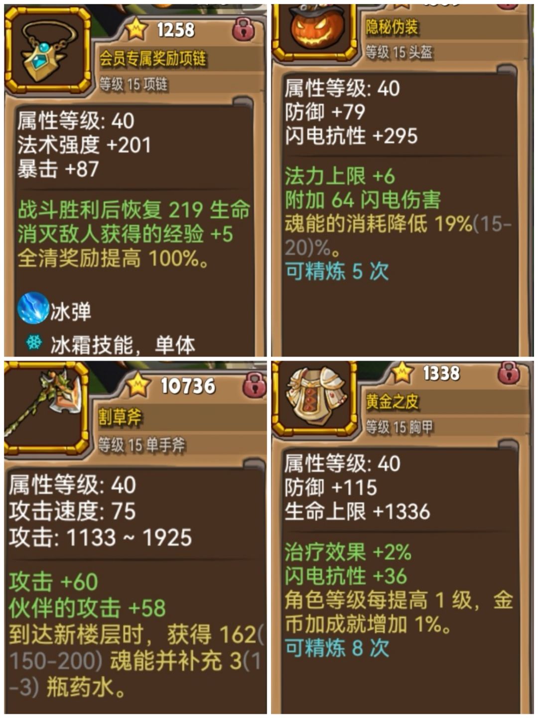 3.割草斧,神器,上城区铸剑师打造。下试炼有了这斧头,魂能有保证。打不过的就用魂技,魂能多,开华丽箱子都是双份出金。极品
