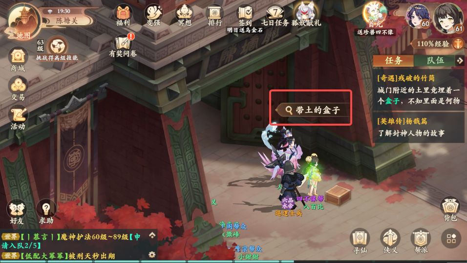 3、对话结束后地面上会出现一个带土的盒子,点击拾取