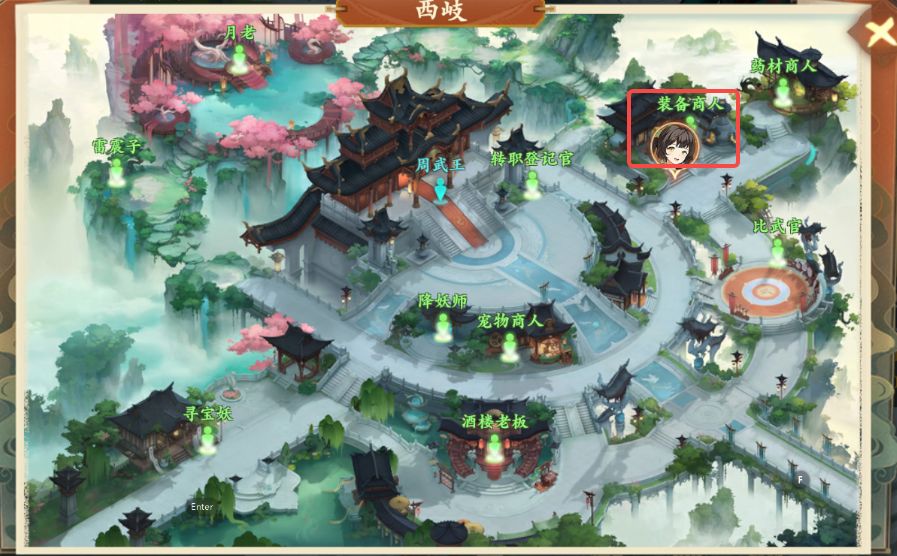 2、前往西岐地图所示地点与药材商人对话