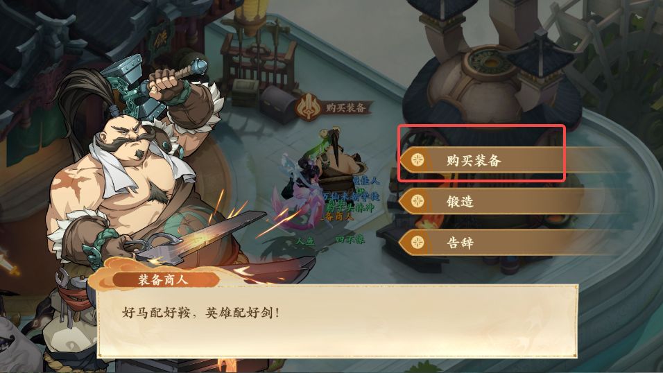 2、前往西岐装备商人处与商人对话