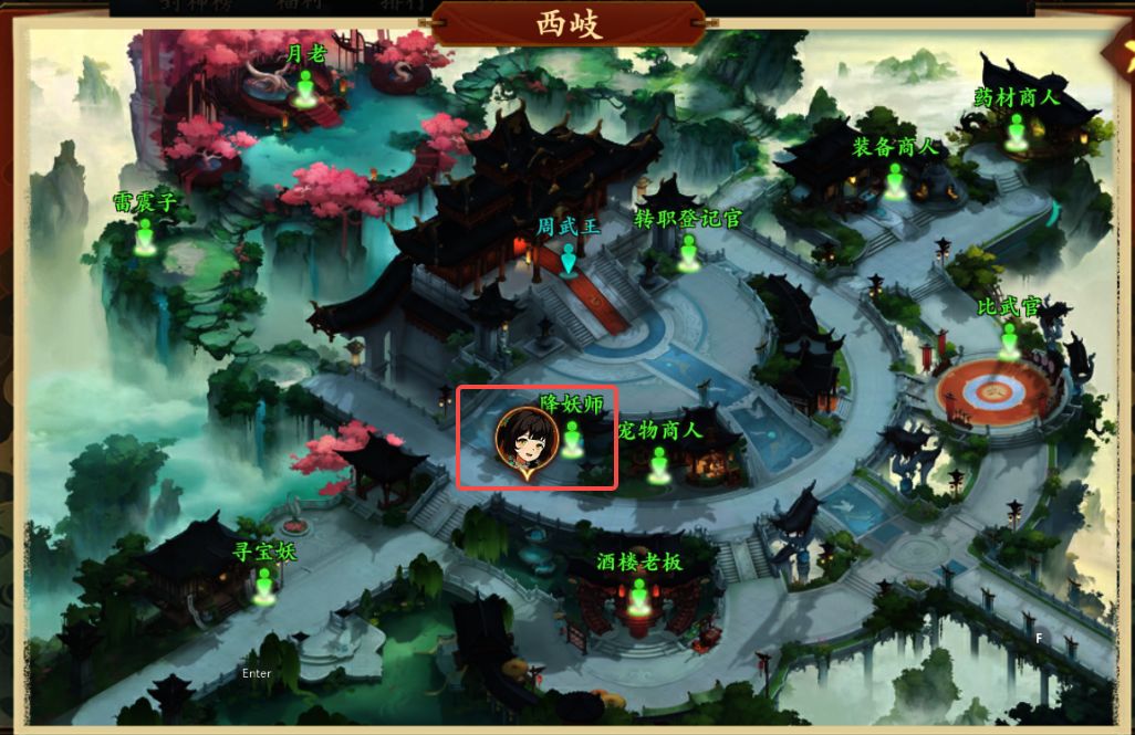 2、前往西岐,打开小地图点击降妖师自动寻路,与降妖师对话后任务完成