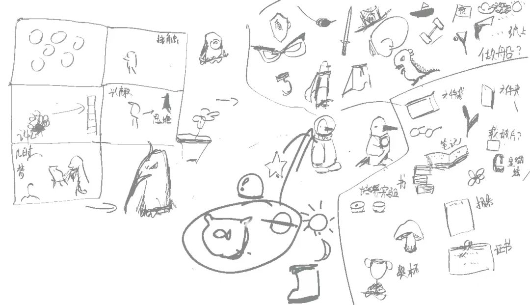我们游戏类型是解谜游戏,为了防止剧透,实机演示暂时还无法透露!这里就先放一些我们讨论过程中的简单草图,大家的灵感一起汇集的过程也很奇妙呢!虽然过程中会有磨蹭和冲突,但是能够一起解决也是一种锻炼思维的方式,巧妙的和我们的主题重合了一部分呢...总之,目前我们的游戏还在逐步开发中,希望大家多多支持!