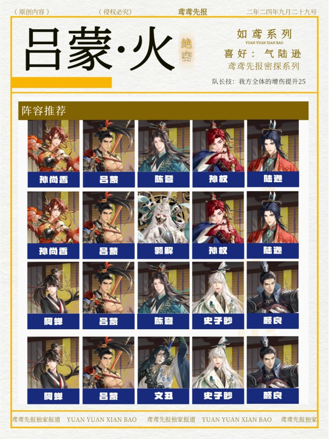 如鸢吕蒙配队攻略新鲜出炉啦!