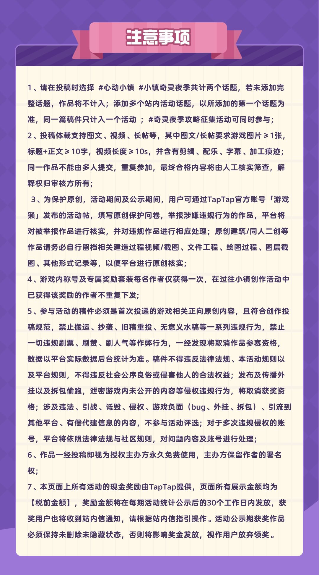 !投稿分享小镇奇灵夜季内容相关的动态,参与4大活动玩法,一起来瓜分20万元现金激励吧![[表情_ohh]](https://img-tc.tapimg.com/market/images/7534bbf0cedbd72eca103f9156a84899.png)