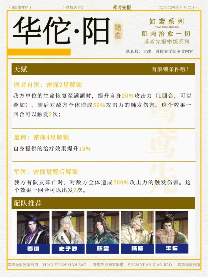 如鸢华佗配队攻略💛大改后的他到底怎么样