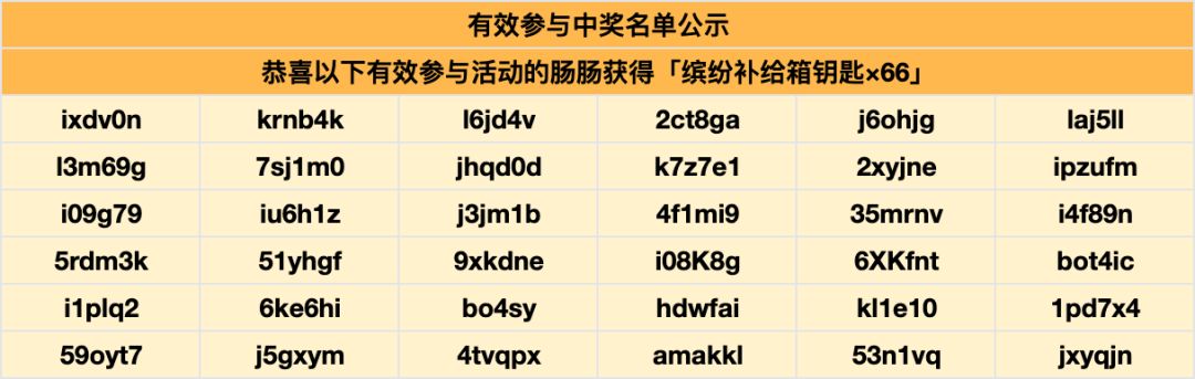 蛋卷将抽取36名有效参与本次活动的肠肠获得缤纷补给箱钥匙x66
