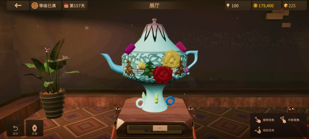 玩了一段时间了,有些器型做不了,现在没灵感了。今天玩的时候被邻居看见了,一个劲叫我放花进去,我也觉得插花好看,可惜这游戏没这功能