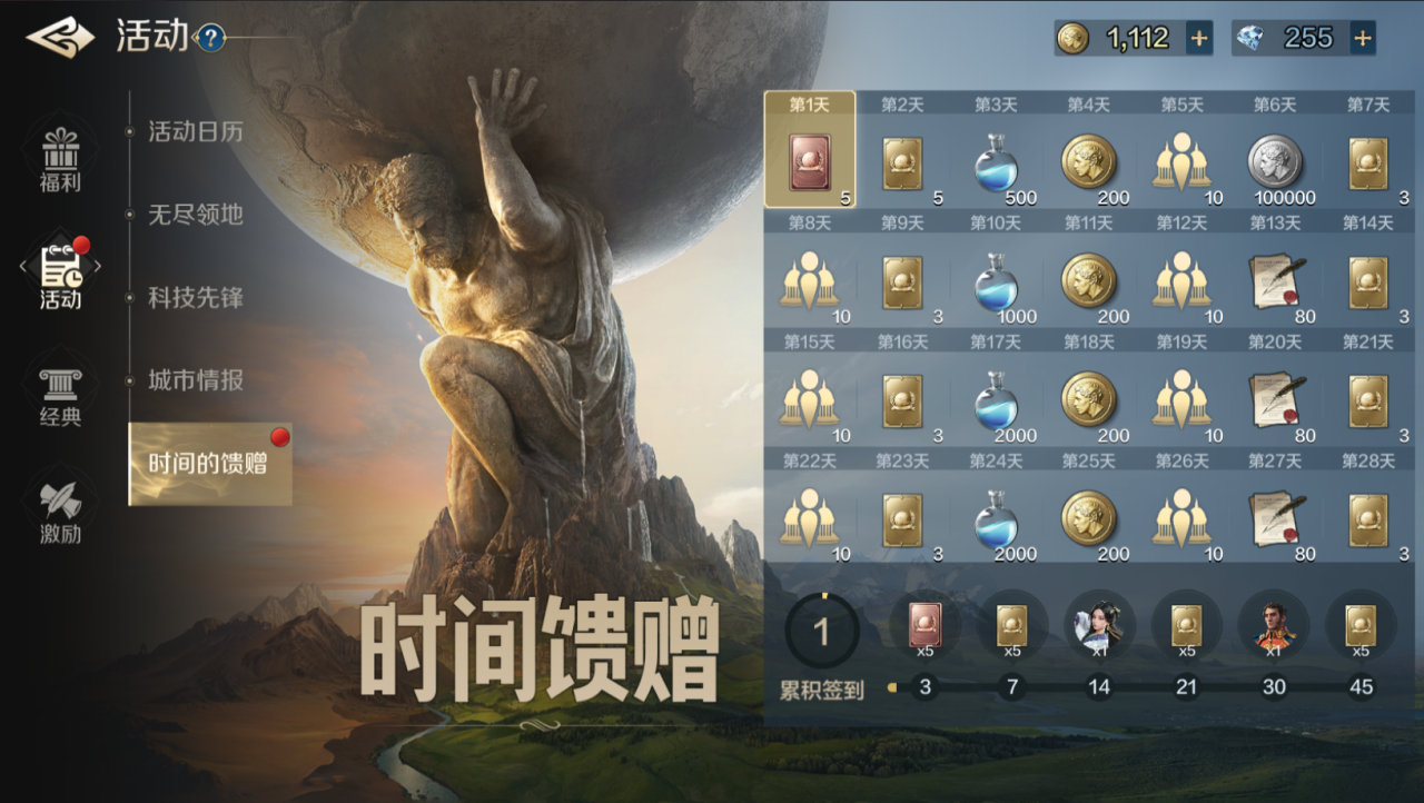 累积签到领好礼!签到达到指定天数后,免费获得热门英雄虞姬和第三纪元新英雄玻利瓦尔,更有超多高级招募令、科技值、使者和技能手稿免费赠送。