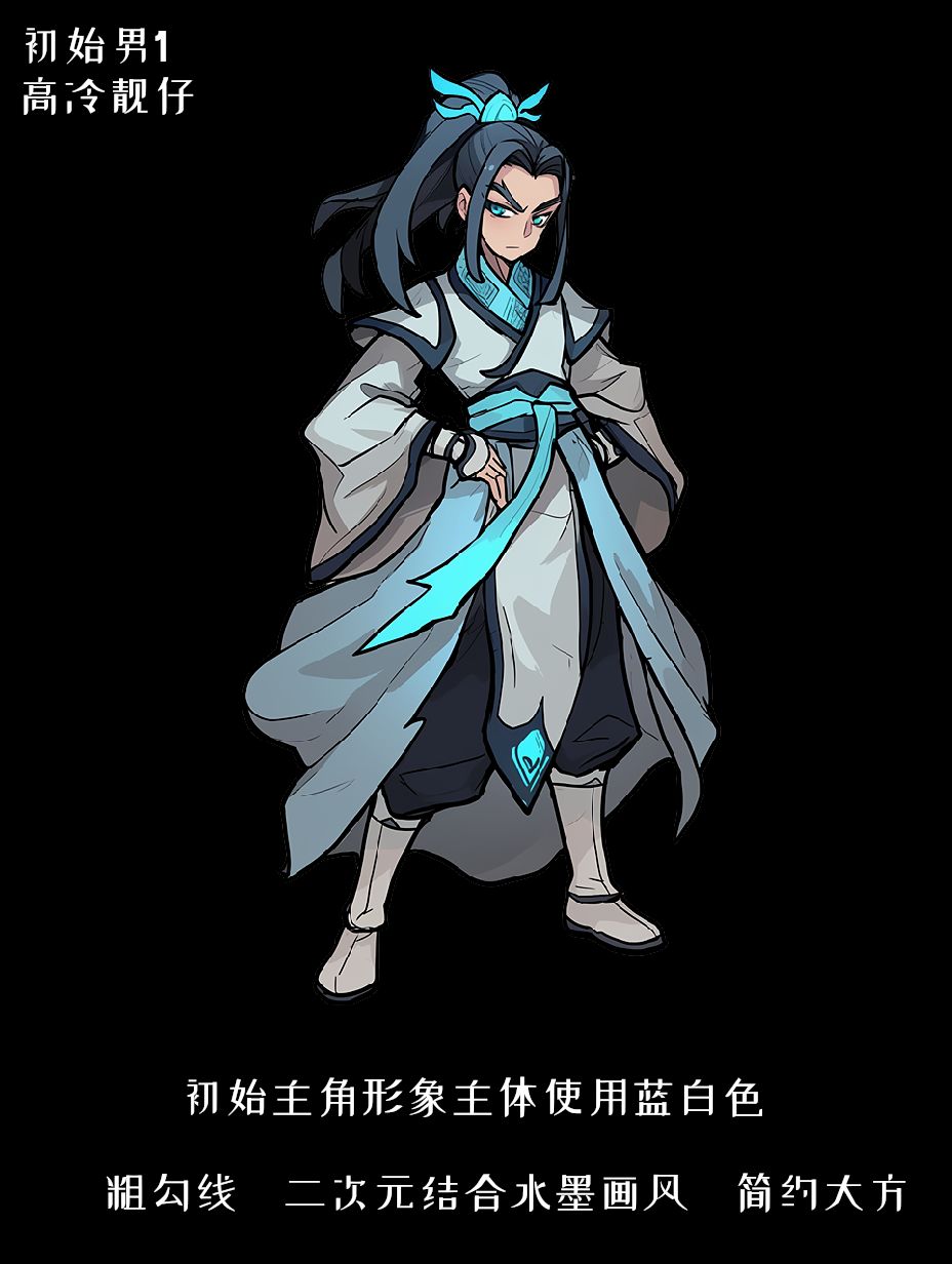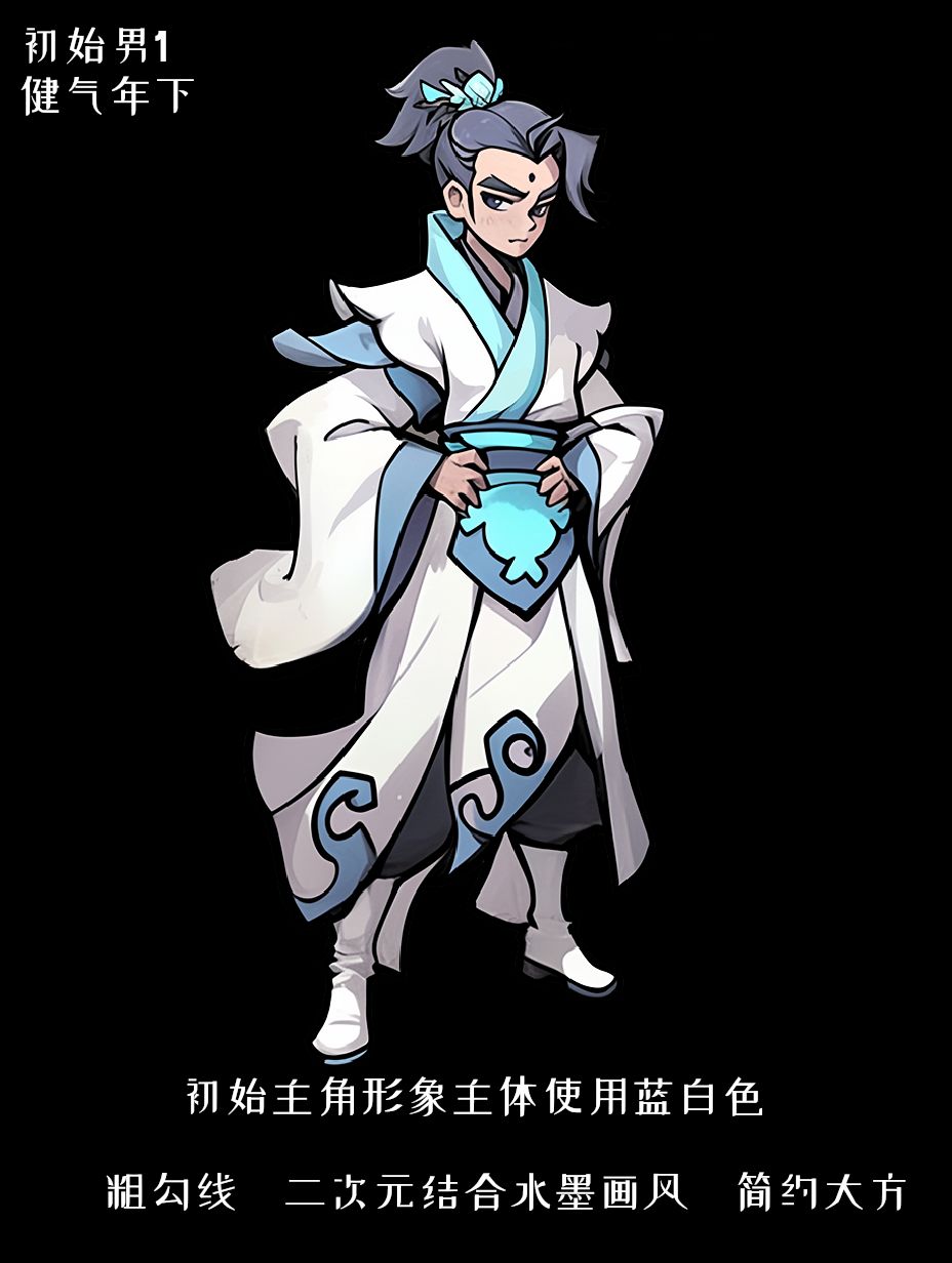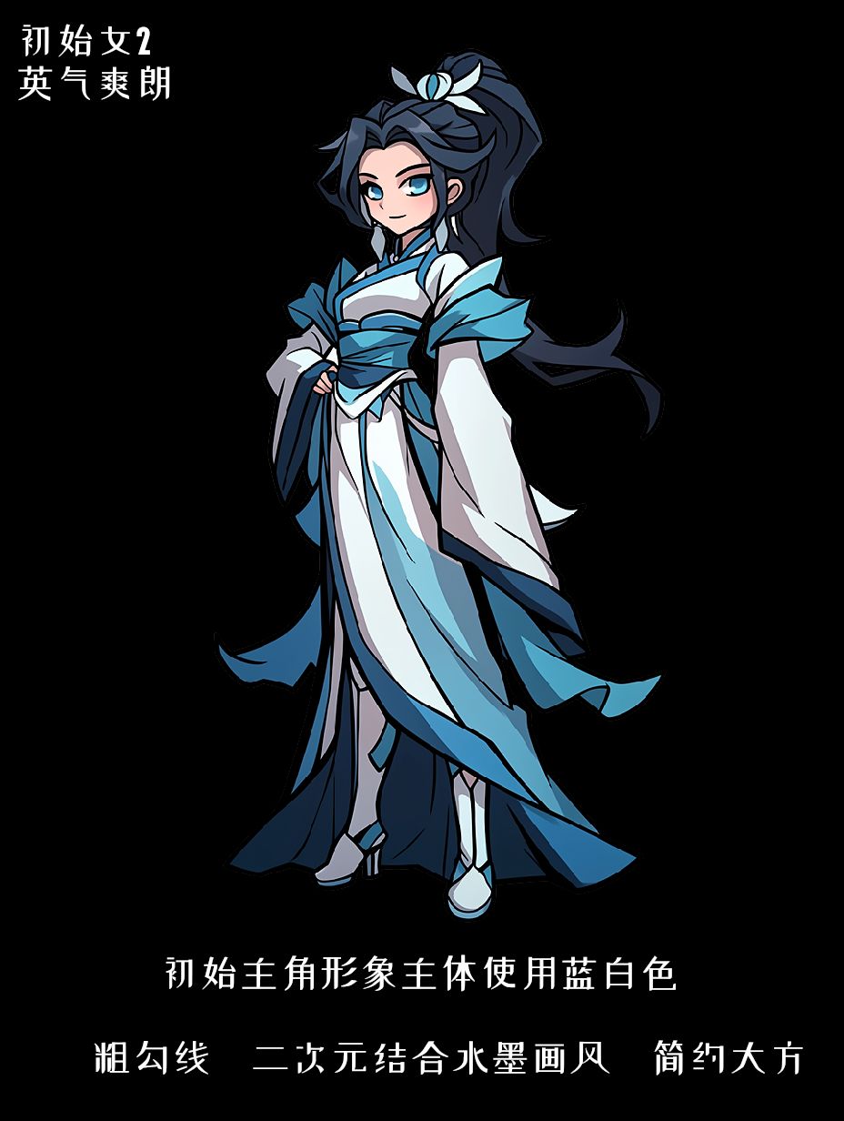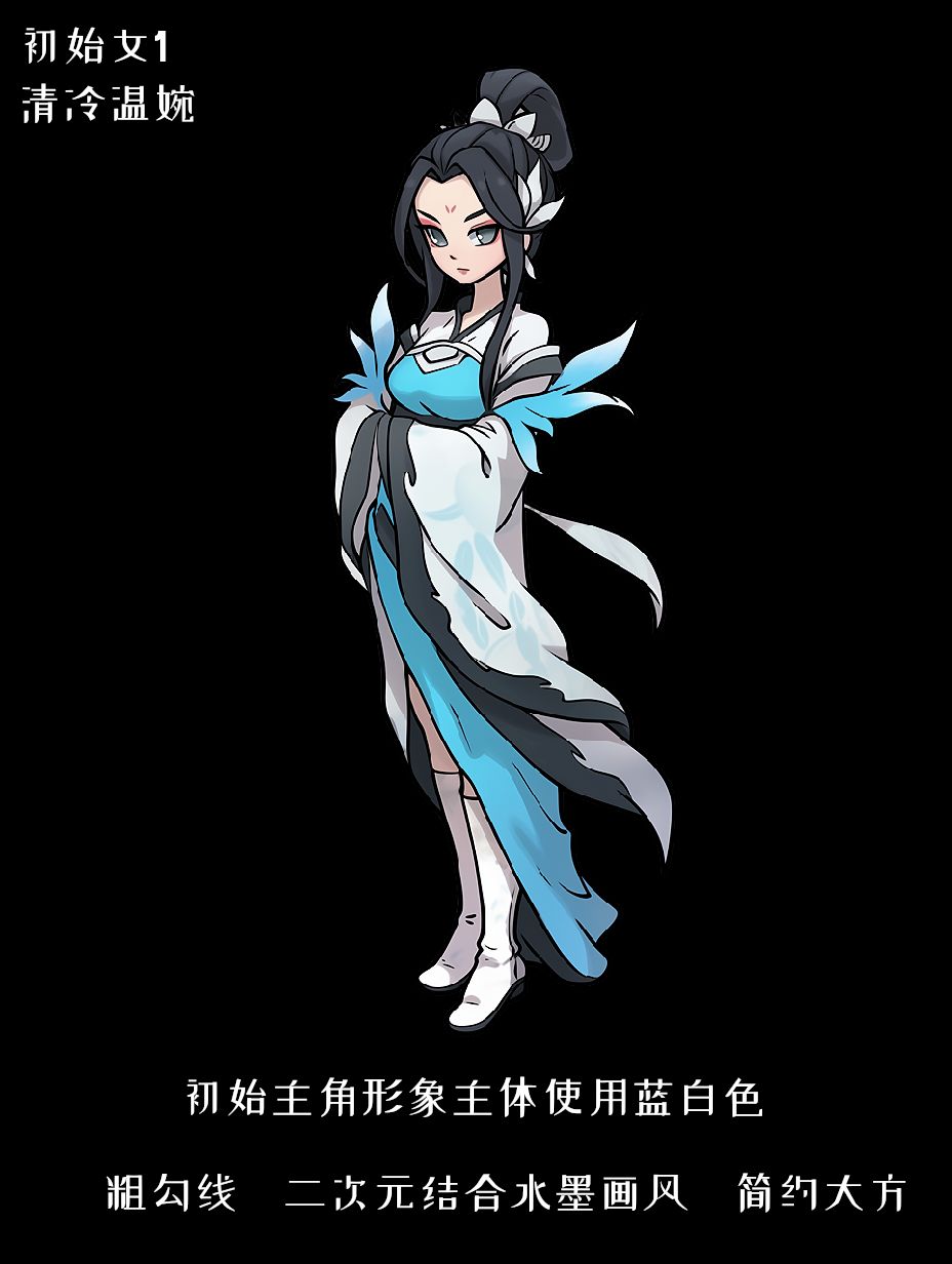 主角的设计融合了古风水墨的清雅质感,