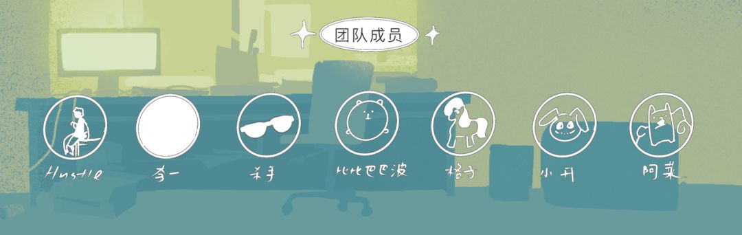 今天向大家正式介绍一下我们团队哈哈哈哈,团队的大家都是有一个非常统一的愿景——不想工作,期待有一天可以实现不上班只工作,因此这个名字——不想工作工作室也就一拍即合啦。我们一共是由7个人共同组成,每个人都身肩数职!(战斗,爽!!