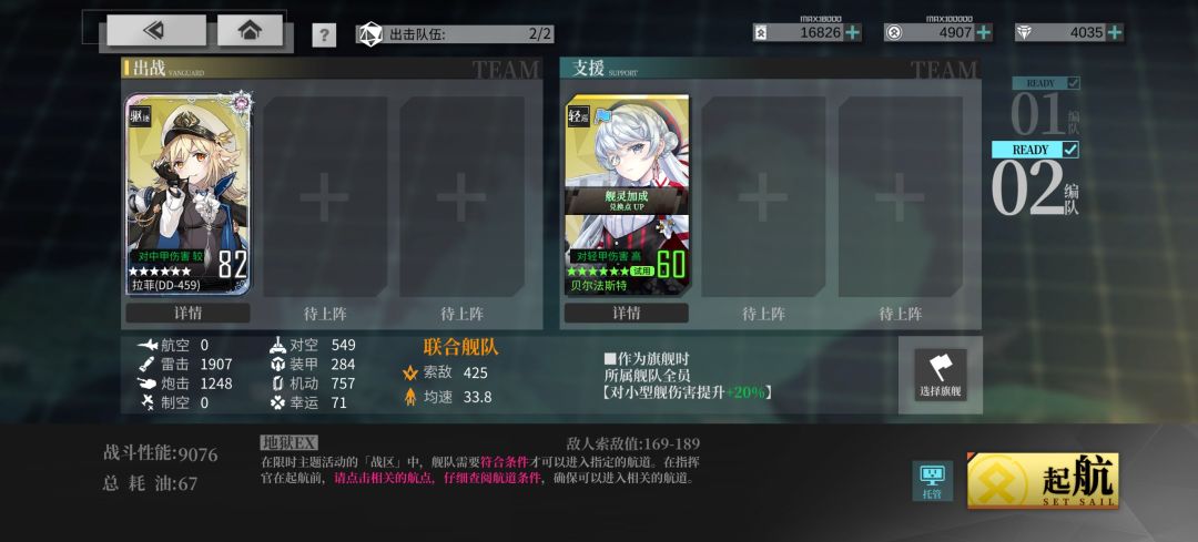 通过活动战巡和吸血鬼组合,一队道中可进行3-4战,通过更换机动装置或者三式弹,可战斗3或4次后沉没,此时自动切换二队,大拉菲具备高强度回血,足以应对后续战斗,支援位可以放置任意练级船。(活动角色技能全白板,吸血鬼支援技能6级,大拉菲技能全9级)(大拉菲强度不是问题,一般能多九十多秒)