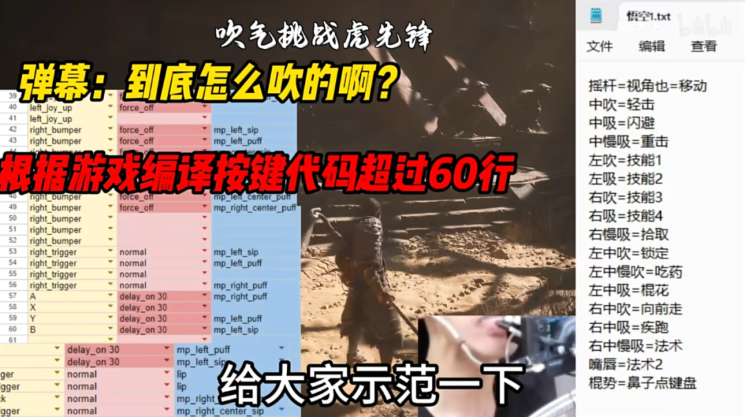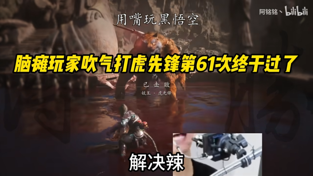 在惊叹“牛逼”之余,这也让我联想起,全盲UP主诺子喵呜,靠听声辨位+弹幕指挥,打过《黑神话:悟空》第一个BOSS的情景;还有脑瘫UP主阿铭铭丶,用嘴吹着气打过虎先锋……