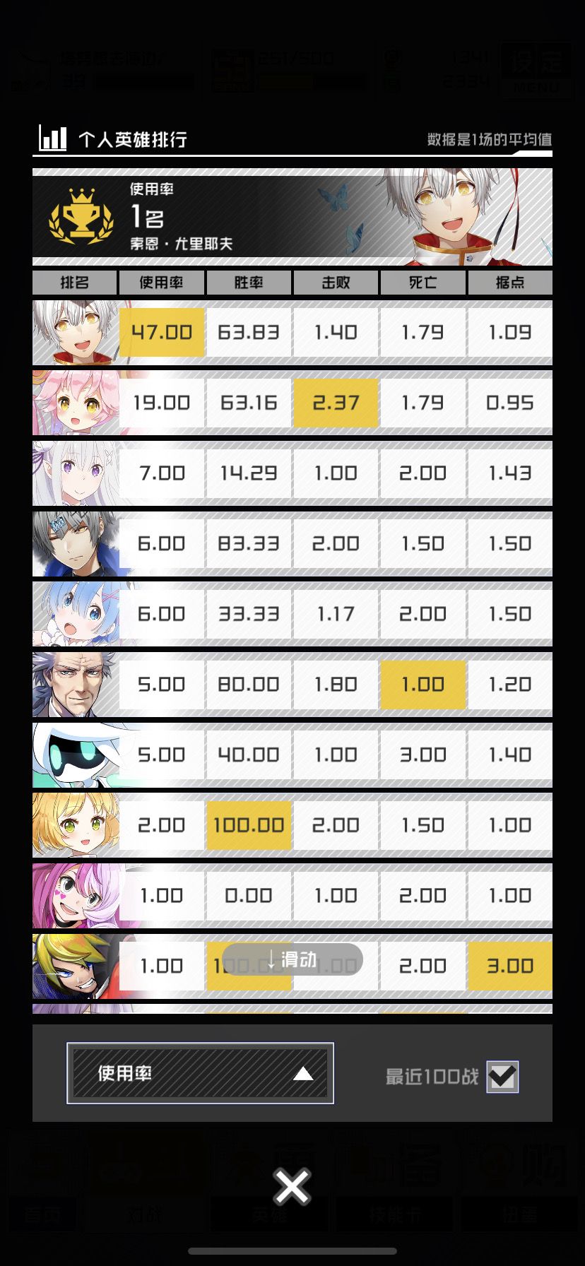最近100场的胜率