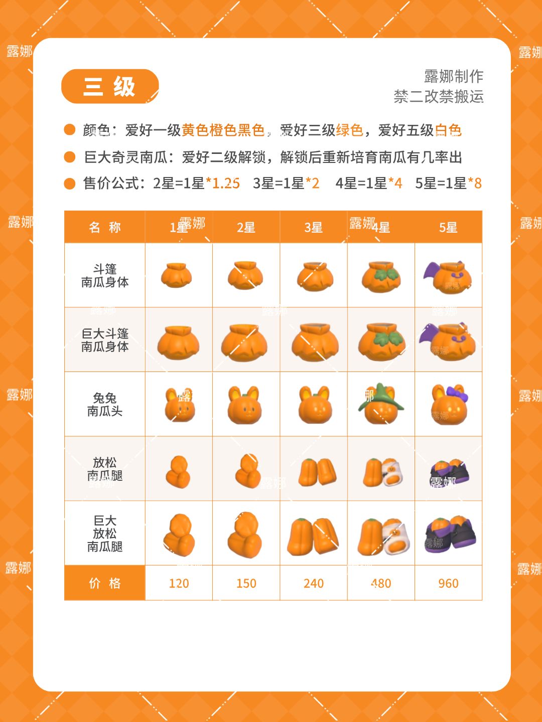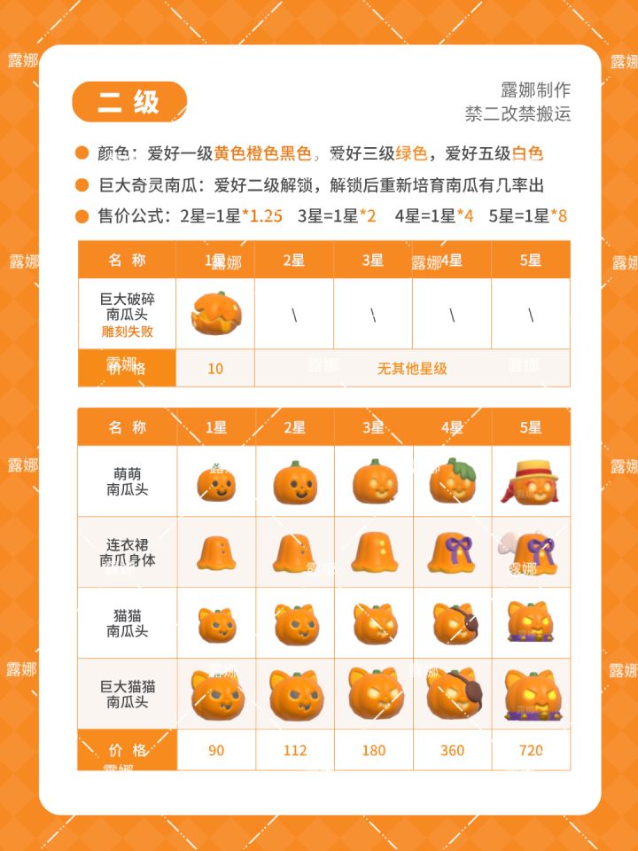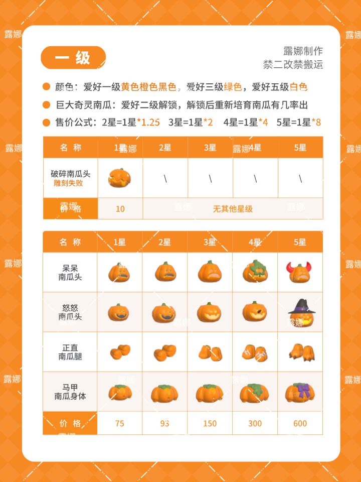 心动小镇 21种南瓜雕,全五星图鉴+售价