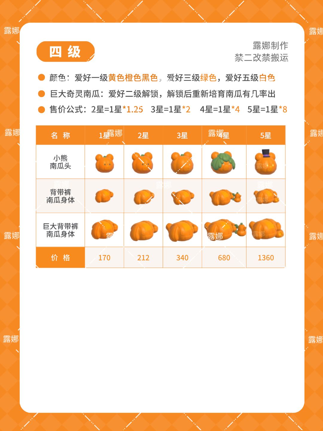 售价公式:2星=1星*1.25(不是1.5且四舍五 不入)
