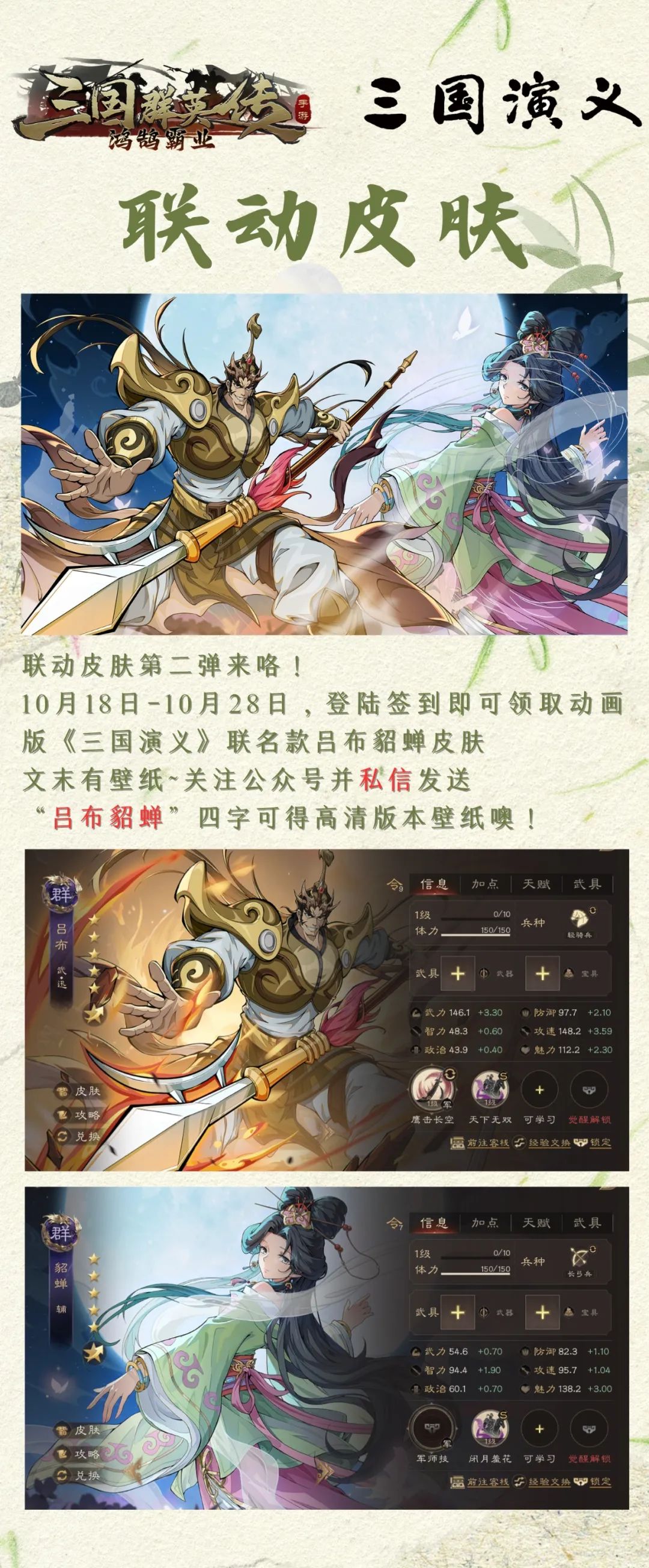 【联动皮肤】又是白送!吕布貂蝉联动皮肤签到即可获得!