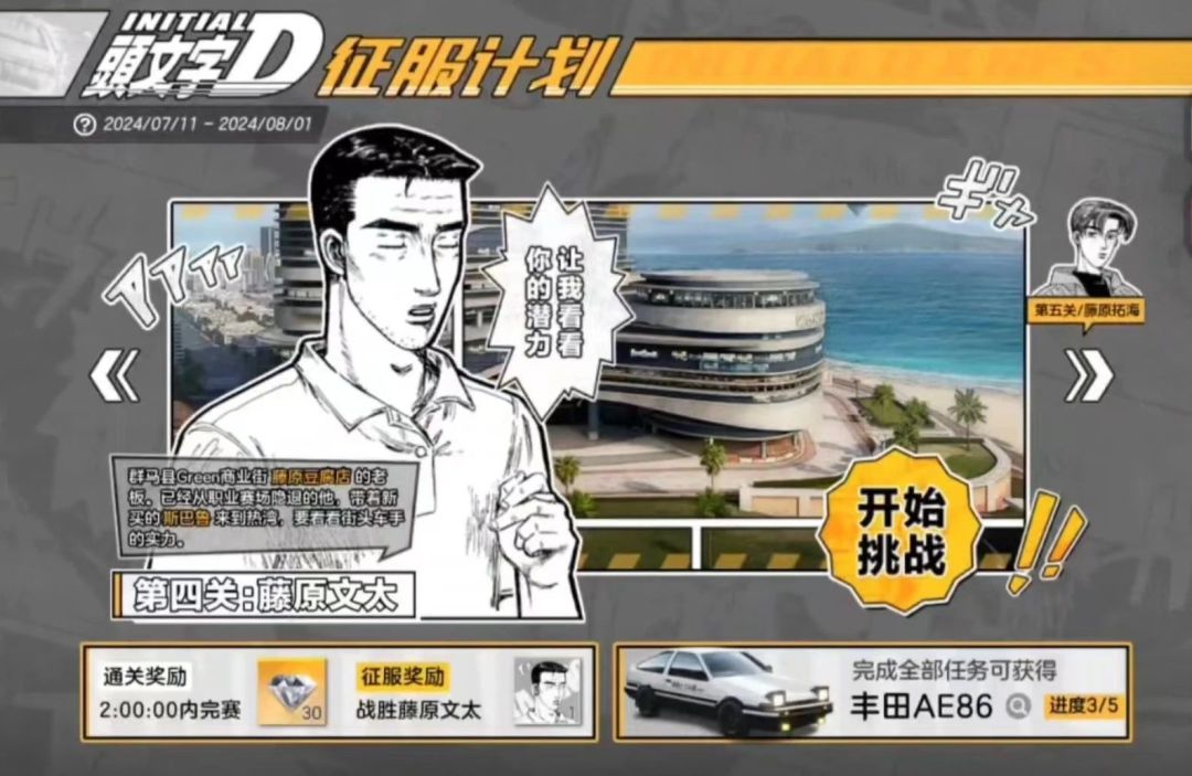 还记得刚开服时“头文字D征服计划”的藤原文太吗他那精湛的车技和难以言喻的压迫感让薇拉到现在还心有余悸