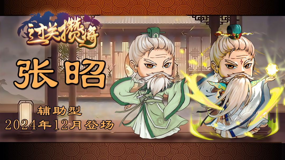 辅助型武将“张昭”即将在《过关攒将》5.11.0版本(预计24年11月底发布)中登场。