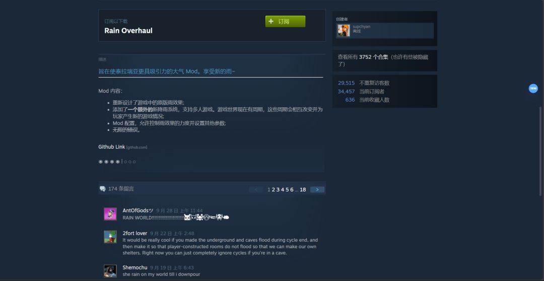 额...晚了一天很抱歉,经过短暂的测试,额...可能下文中Rain Overhaul模组貌似无法正常触发,在了解完全前估计都不会有新内容了