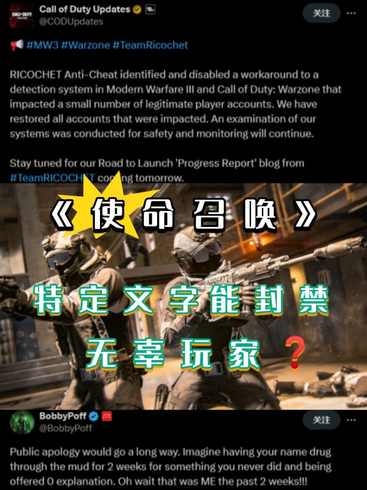 游戏的更新官方社交媒体写道:“RICOCHET 反作弊团队确认并禁用了一个在《现代战争3》以及《使命召唤:战区》中检测系统的临时权宜功能,该功能影响了少量正常玩家的账户。我们已经恢复了所有受影响的账户。”