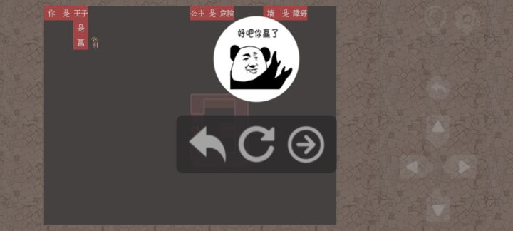 第五关,把“公主是赢”的“是赢”,推到“你是王子”下面