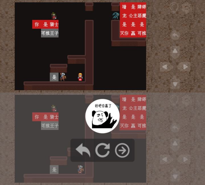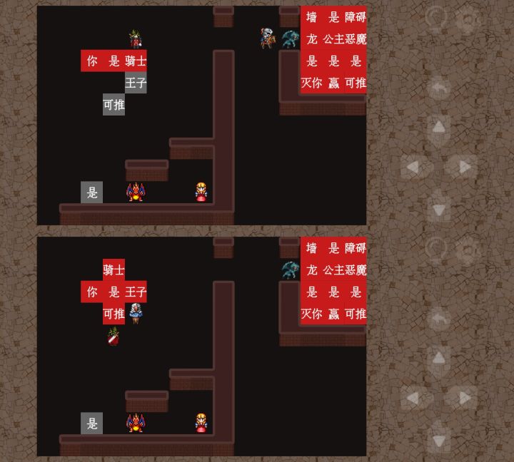 操纵【王子】,把文字推动至,“你是王子”,“骑士是可推”,并把【骑士】用“是”推至【公主】旁,再将“骑士”替换“王子”,变成“你是骑士”,即可