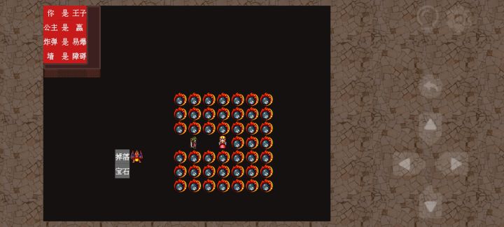 随便推动三个文字排成一排,引爆炸弹即可炸开一条路,触碰【公主】即可过关