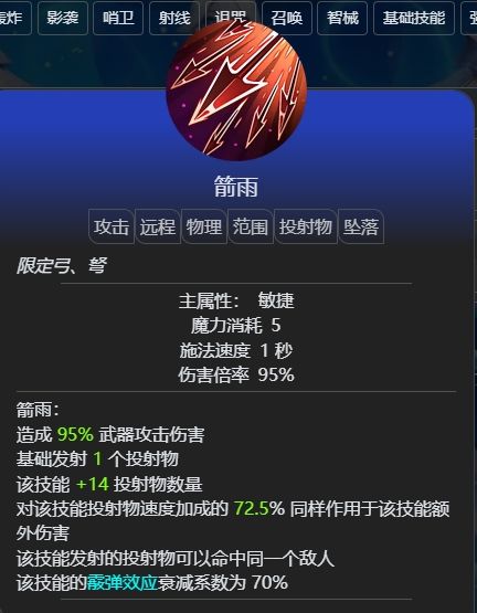 首先箭雨这个技能是带:霰弹效应,可以重复集中所有投射物可以击中1个目标。