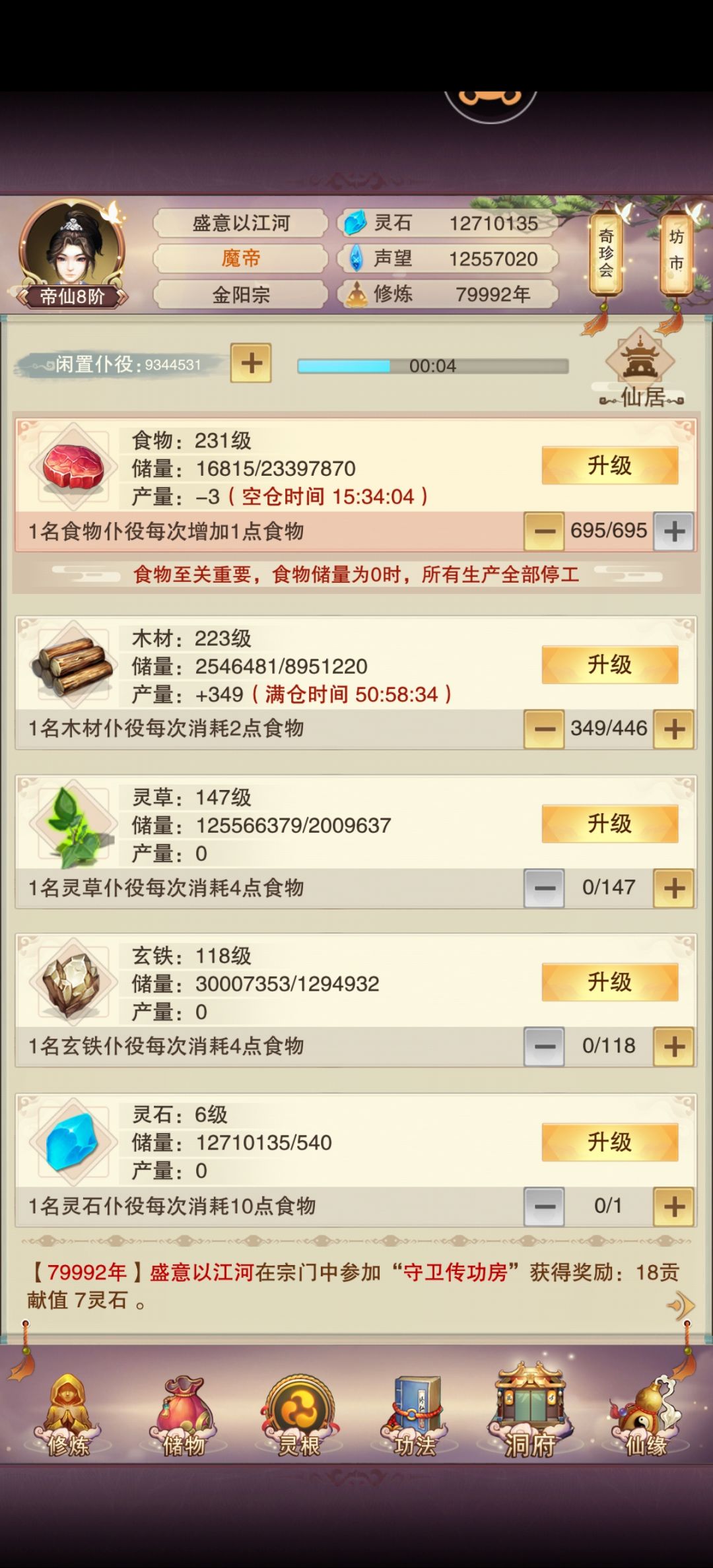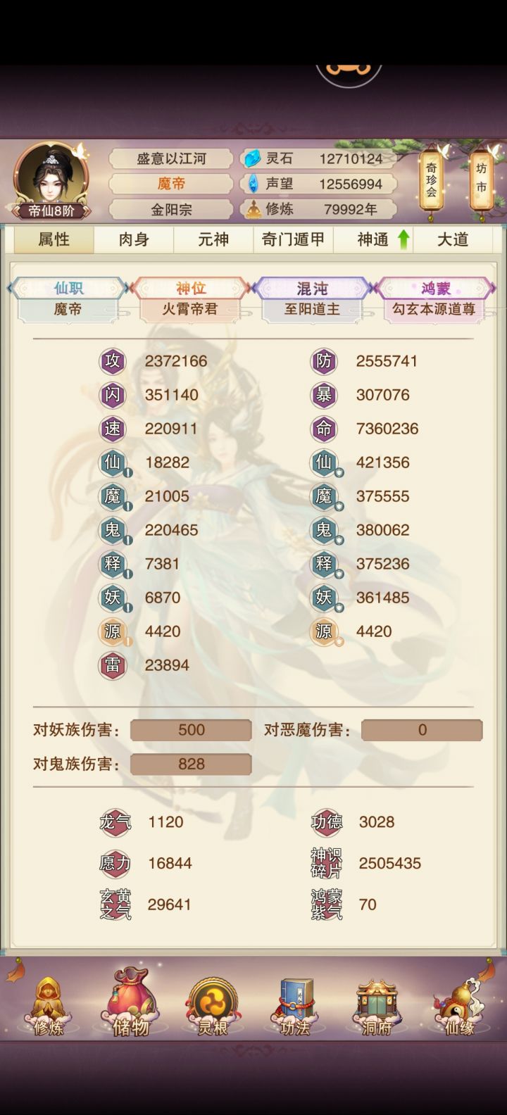400神识点,131本攻、107本防、55本神秘;
