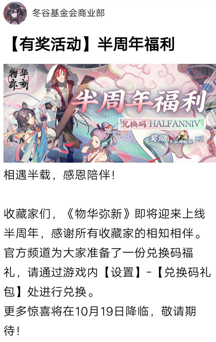 最新半周年活动发了一个礼包码!
