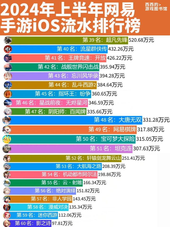 网易游戏24年上半年游戏收入排行榜