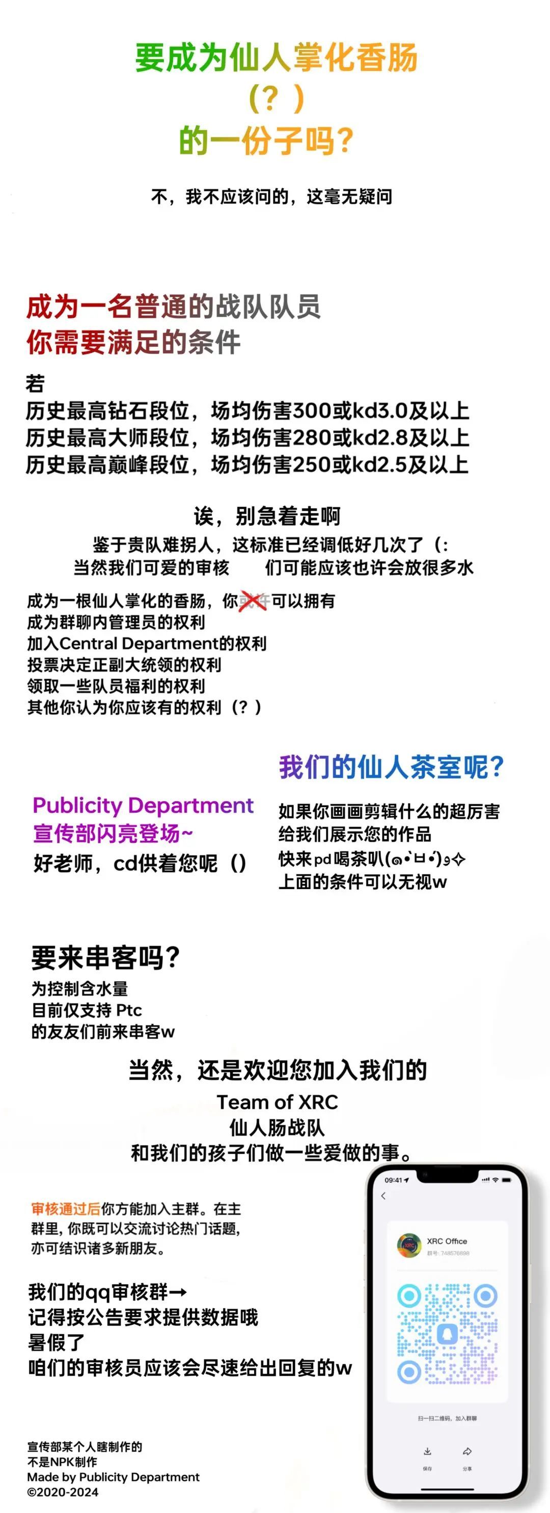 以下是我们仙人肠战队的招募信息与审核群码,欢迎有意者加入我们,我们真心希望你有望在我们战队的舞台!如果加入的及时,你有很大的可能成为第二弹的q版人物喔~