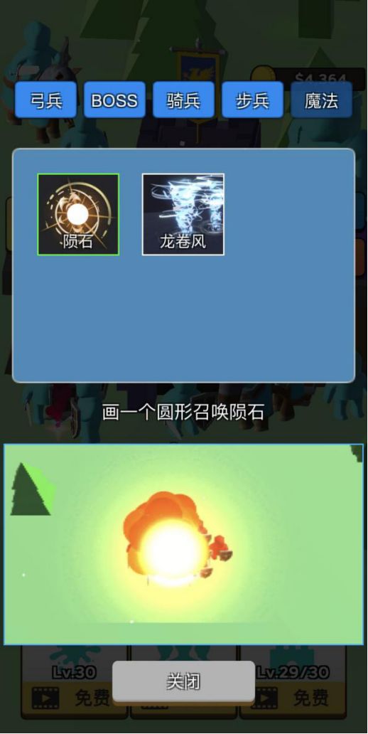 1.在屏幕上绘画对应的图案,召唤士兵及魔法
