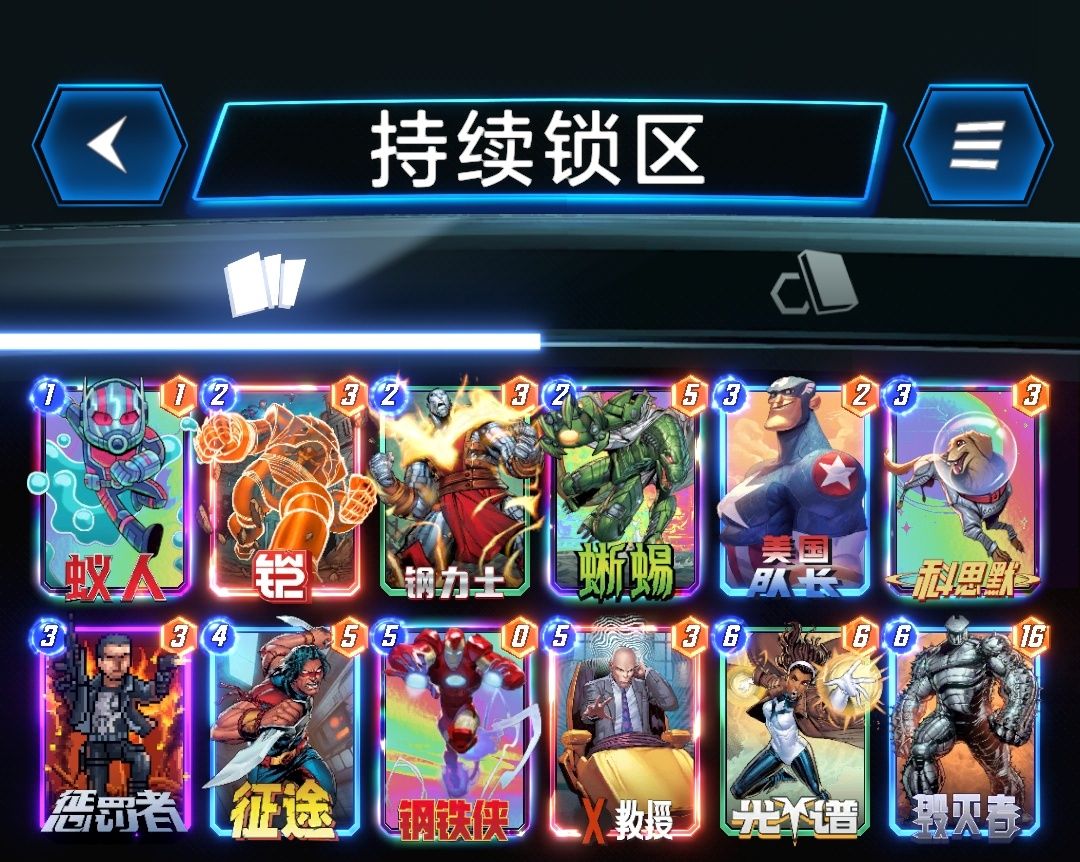 一般情况我们是一路蚁人+凯+惩罚者/美队+钢铁侠来达到一个大点数,然后另外两路看情况去拿x去偷