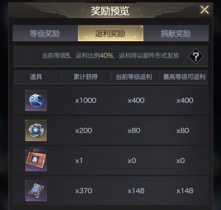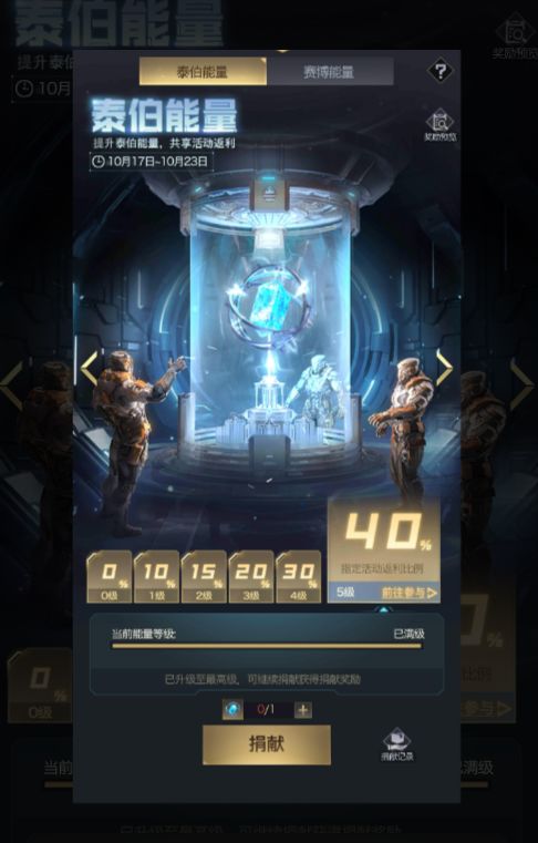 荣耀同享活动小编已经期待已久了,相信很多指挥官都在等这个活动,先说泰伯能量:一、最高40%的返利,所在联盟的泰伯能量和赛博能量在等级提升时与活动结束时(需重新登录),会以邮件的形式发送返利奖励。二、返利道具数量的计算方式为:返还数量=累计获得数量 ×当前返利比例-已返利数量。本活动返利道具数量向下取整,根据返利比例计算得出的返还道具数量不足1个时不返,大家可以在返利奖励界面查看当前能量等级返利奖励,以及最高能量等级返利奖励。活动结束时,会按当前能量等级返利比例进行最后一次返利结算。