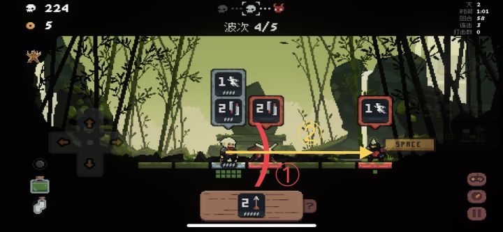 2.远程连杀(图2),当远程怪躲在其他怪后面时,就需要同时击杀多只怪,不然杀完前面的怪会被远程怪打一下