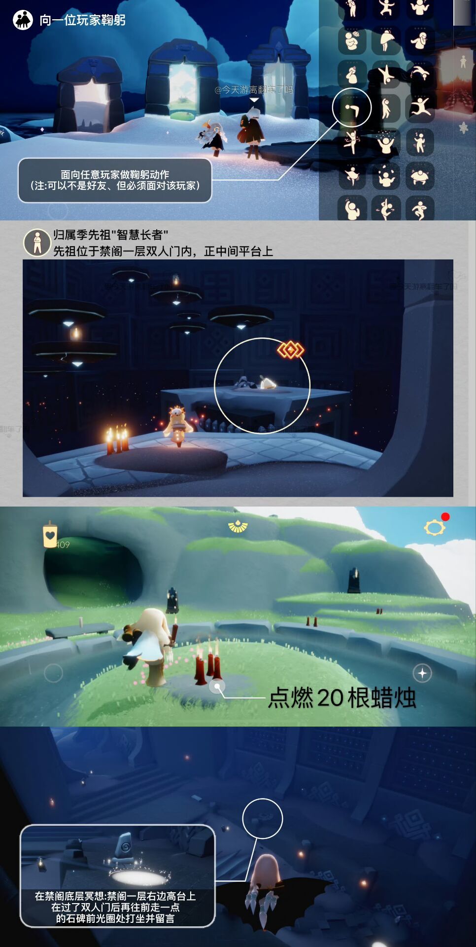 《光遇》游戏中每天的每日任务及大蜡烛的位置都不相同,玩家完成每日任务及收集大蜡烛都可以得到丰厚的兑换奖励,奖励可以用于兑换各种动作及道具,不过很多小伙伴不知道每日任务怎么做,又懒得自己去找大蜡烛的位置,我们汇总了每日任务的完成攻略以及蜡烛位置,一起来看看吧!