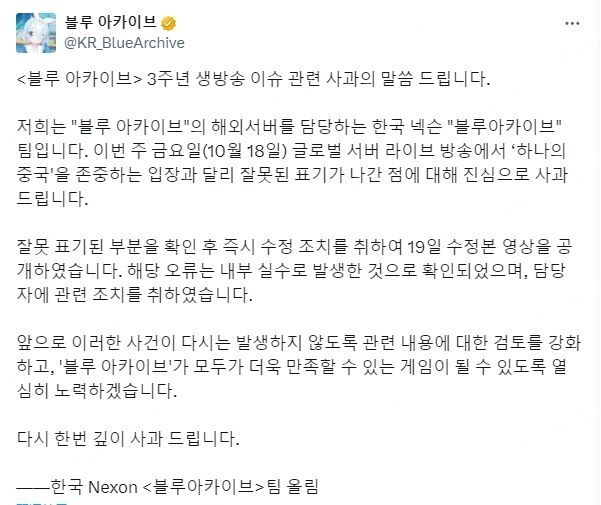 Nexon对此事发表全语种道歉