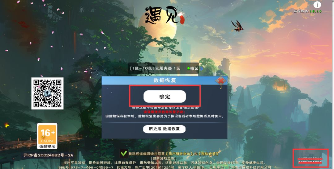 因为最新的数据存储在本地,所以大家进入游戏登录界面,直接点“进入游戏”就行。请不要选择“数据恢复”功能按钮。