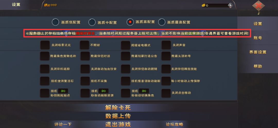 “服务器上的存档比本地存档游戏时间长,当本地时间超过服务器上就可上传,当前不影响当前正常游戏..."