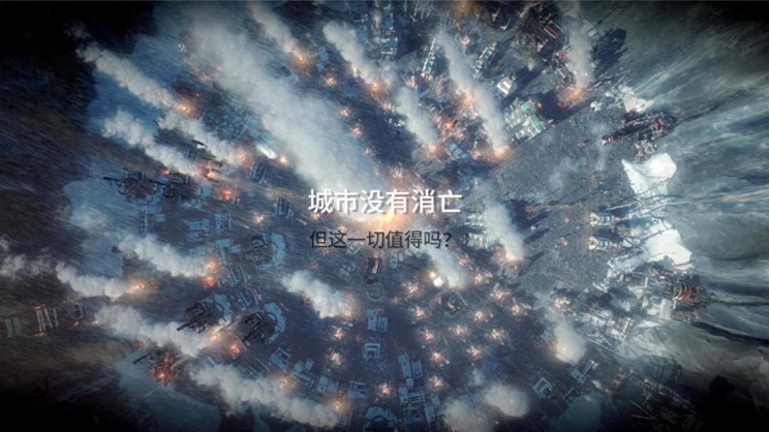相信大家对《冰汽时代》的第一印象,都会是那个沟槽的“这一切值得吗?”,在玩家刚带领城市渡过难关,身心放松,观看着自己一路发展城市直至成功从暴风雪中活下来时,突然给你来一个黑屏白字拷问,搁我我也破防。