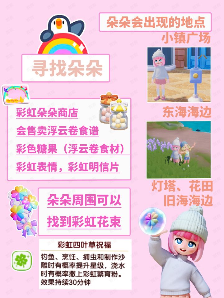 ⭐朵朵目前出没地点有:花田 小镇广场 渔村灯塔 东海 旧海⭐