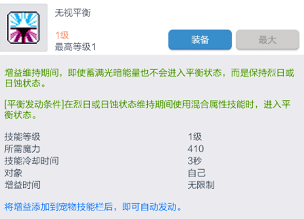 夜光挂机的时候不会自己进入平衡,导致夜光的挂机效率会有所降低,挂机时让宠物取消装备3转被动的【无视平衡】即可让夜光在挂机时进入平衡状态。