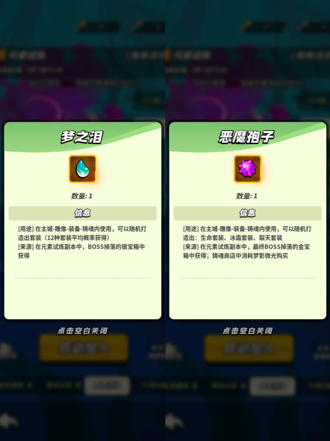 每次给装备铸魂都要消耗一个梦之泪或者副本产出的材料(如恶魔孢子)。