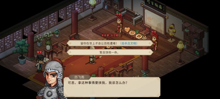 招安完吕文恒,然后触发清风塞绑架放走官员任务,就可以剧情杀吕文恒。先偷兵符再杀。然后报告康王,康王会问,吕文恒暴毙你怎么知道,然后主角会说,是我杀的。笑死