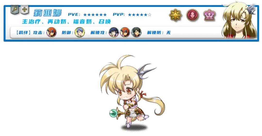 莉亚娜是梦战二代女主角,光之圣女,第一代八大金刚之一。她是最稳定的再动奶,治疗量很足,还可以召唤小天使来辅助团队。莉亚娜是梦战的老牌治疗,6年了还是主流治疗之一,至今没有跌落神坛,是名副其实的全能奶妈。她的治疗量在奶妈中首屈一指,再动、福音、召唤等各种辅助能力也都很简单粗暴。和其他奶妈比,莉亚娜的综合能力是数一数二的,可以胜任大部分情况。特别是治疗量明显高于新出的功能型奶妈,自身也很硬,就让人很有安全感。PVE中,莉亚娜非常全能,治疗量属一数二,再动可以提升团队爆发力,福音也可以应对各种复杂情况。莉亚娜还能用小天使遛狗,大大降低副本难度,后期挑战本上场率也是非常之高,是抄作业的常用英雄。PVP中,莉亚娜是巅峰初期的第一奶妈,称霸了五个赛季。现在虽然不是唯一奶了,但也一直是人权级别。福音神技:可以防各种禁疗、治疗反转、眩晕,一个福音就能防住N个套路。再动神技:变化太多,对手很难防,卡个后手二连动,神仙也得死。小天使神技:先驱散再加血,妈妈再也不用担心禁疗了。