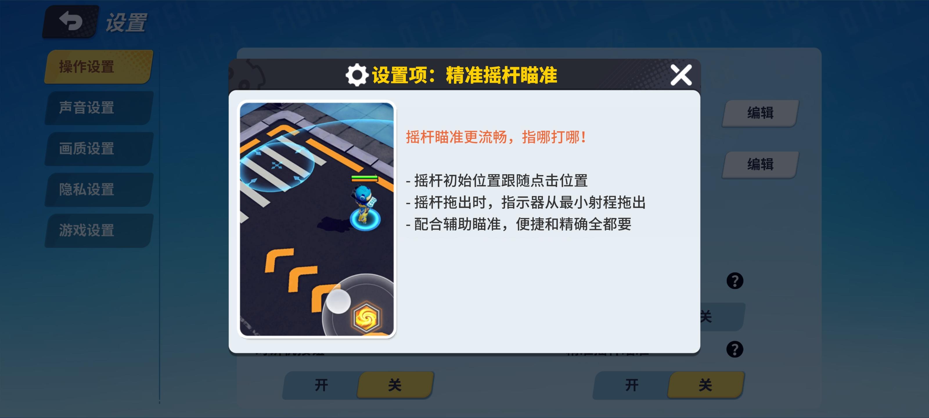理解了这个跟随点击位置,就能从字面理解精准摇杆瞄准:让你的攻击键、切换键、大招键可以轻微挪动。这设置本意是照顾新手的,有些人确实找不准键位。但就像上面说的,滑动幅度太大,摇杆没复位时,方向会出错,一些抱人扔墙,再切换+轻滑,会感觉滑不出来。(这个逻辑链是我猜的)