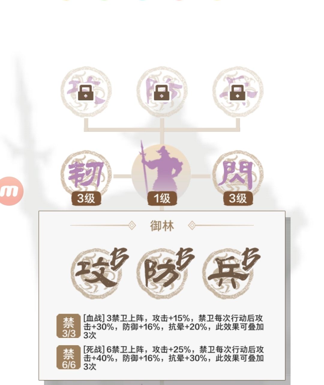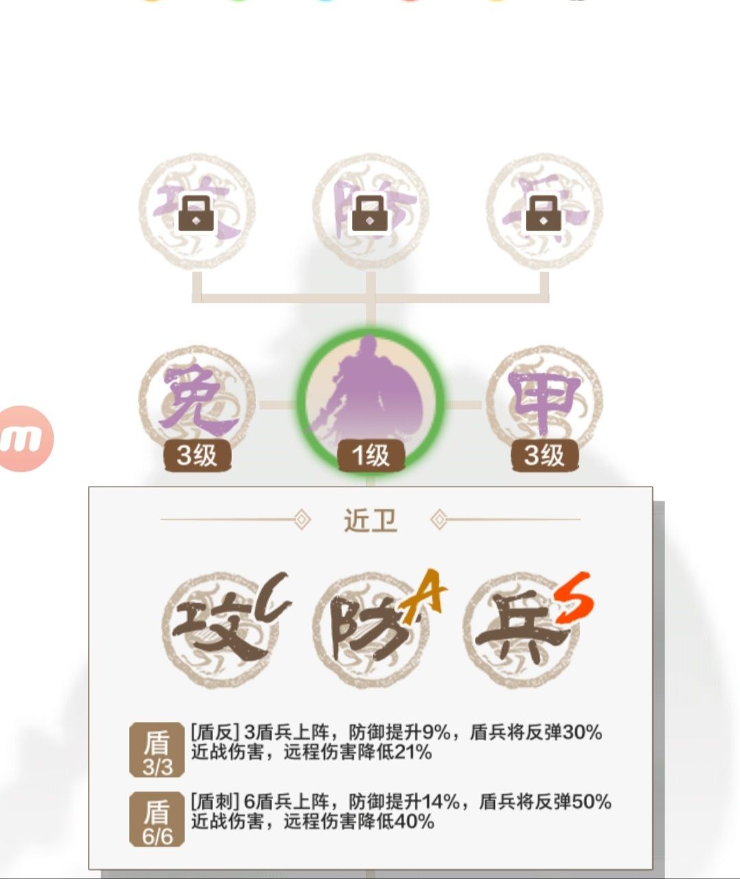 前言:小弟目前唯三擁有的紫階兵种是「御林」(禁卫),「兵仙」(謀士)及「近卫」(盾兵),其餘都是蓝階。接下來不知该先开始为哪个兵种升階。