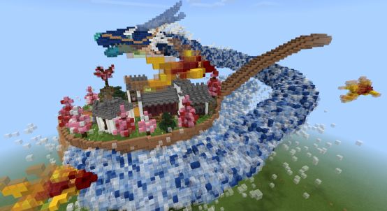 还有金鱼围绕着龙身游荡,显得小镇一片祥和,梦幻得好似仙境一般~