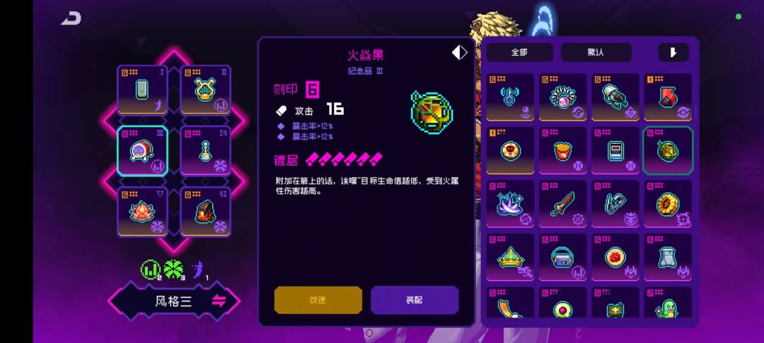 实战中由于我们要既要捡业火纪念品,还要捡节奏纪念品,还要捡刀一火一的纪念品难免会出现冲突的情况,我们应该如何取舍呢?我们取舍的一个基本原则就是伤害的加成,尽快能不要让加伤害纪念品被吞。